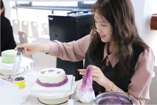 活动现场,空气中弥漫着香甜的气息,专业的烘焙老师首先为大家讲解了蛋糕制作的基础知识和技巧,从蛋糕的抹面到装饰技巧,一步步细致讲解,女职工们听得津津有味,跃跃欲试。